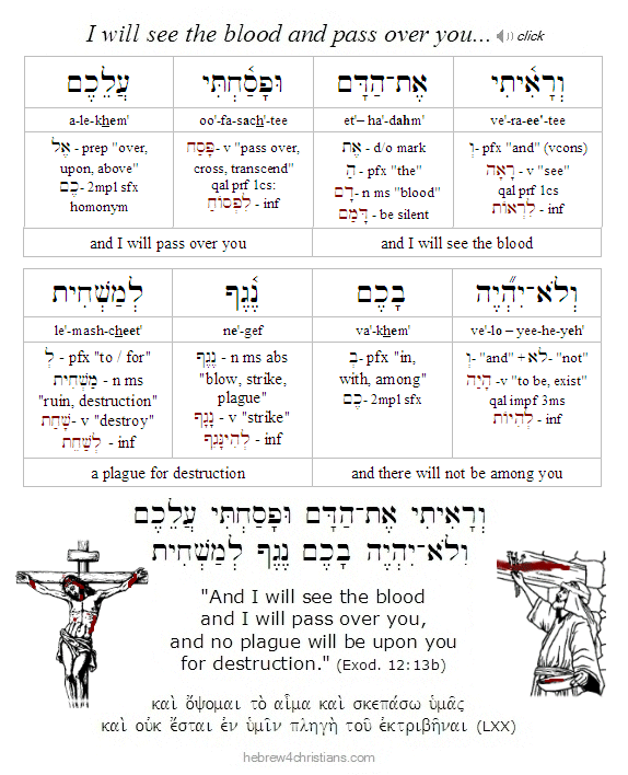 Notice that the Hebrew verb "pasach" can also mean "to limp," suggesting the heel of Messiah that was "bruised" in the battle for our redemption (Gen. 3:15). It is the cross of Yeshua that enables the mercy of God to "overcome" his justice, or that allows "steadfast love and truth to meet; righteousness and peace to kiss" (Psalm 85:10). His attribute of Justice passes over us as His attribute of Compassion passes into us... The sacrifice of Messiah allows God to be both just and the justifier of those who trust in God's remedy and exchange for our sin (Rom. 3:26).